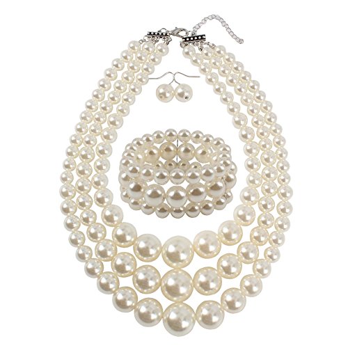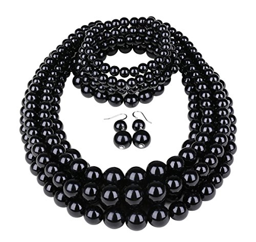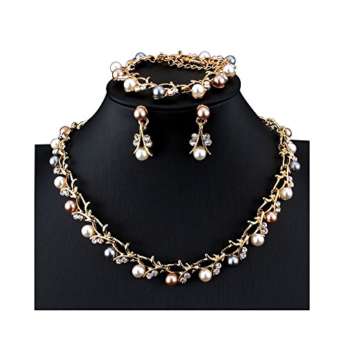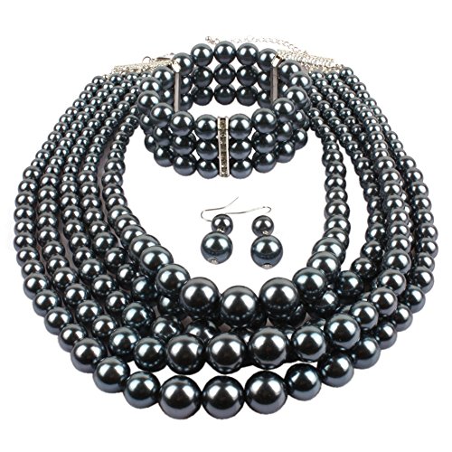 Lanue Fashion Handmade Bead Multilayer Statement Necklace Bracelet Earrings Jewelry Set (Green)    NA Kosmos-LI Multi Layer Pearl Strand Necklace Bracelet and Earring Imitate Grey Pearl Jewelry Set    Women’s Simulated Pearl Rhinestone Vine Leaf Necklace Earrings Bracelet Set for Party Wedding (Mix-pearl)