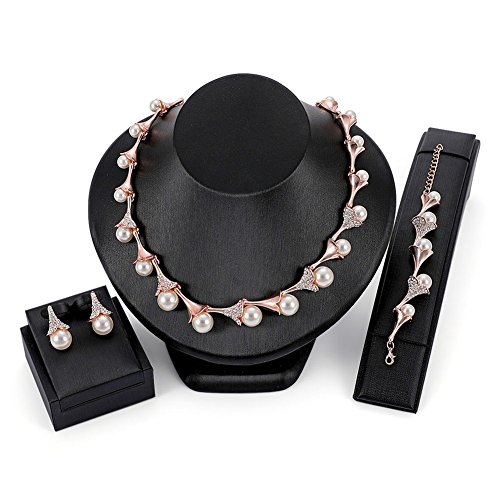 Moochi Gold Plated Multiple Strands Necklace Earrings Bracelet Ring Jewelry Set    VenFashion 050 Clear Crystal Pearl Necklace Earrings Bracelet Set Bridal wedding Party Prom Gift    STI-JEWELS Bridal Teardrop Pearl Necklace Earrings Bracelet Set Rose Gold Jewelry Sets for Women