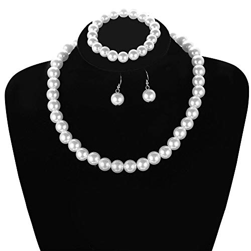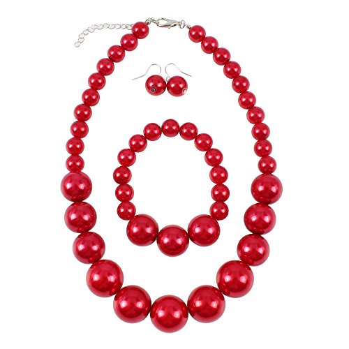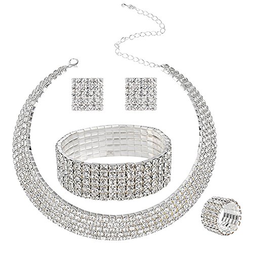 Wiwiw 5 Row Crystal Rhinestone Choker Necklace Earrings Bracelet Ring Jewelry Set for Bridal Wedding (5 Row Set)    FUMUD Wedding Bridal Jewelry Set Crystal Rhinestone V Shape Necklace and Earrings for Women Silver Plated    KOSMOS-LI Women's Large Big Simulated Red Pearl Statement 19" Necklace Bracelet and Earrings Jewelry Set