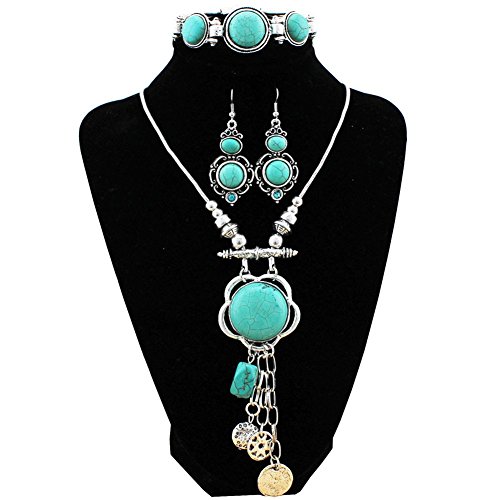 Rurah Retro Jewelry Set Bohemian Wind National Wind Female Turquoise Earrings Necklace Bracelet Set    KOSMOS-LI Women's 3 Layer Simulated Ivory Pearl Statement 18" Necklace Bracelet and Earrings Jewelry Set    OUHE 18K Wedding Jewelry Sets for Brides, Gold Jewelry Sets for Women - Gold Plated Crystal Necklace Earrings Ring Bracelet