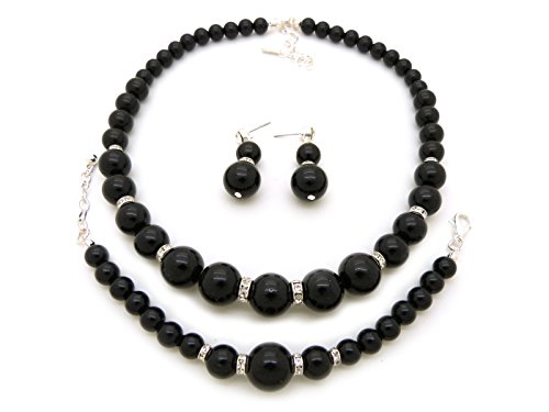 Rhinestone Trimmed Simulated Pearl Necklace, Bracelet, Pierced Earring 3 Set (Black)    JOERICA Simulated Pearl Statement Jewelry Sets for Women Girls Multi Layer Bead Necklace Bracelet Earrings Set Gifts Fit With Meeting Party Dress    Gold Plated Brown Rhinestones Beads Pendant 2-Tone Wide Chain Necklace Bracelet Earring Ring Jewelry Set