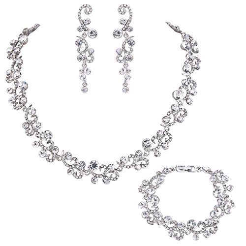Linpeng Necklace Bracelet Earrings Set for Women - Gemstone Collage Stone Jewelry Set - Gemstones with Rhinestones Spacers - Crystal Beads - Necklace Length 18", Bracelet 7" - Red Tone - 1 Set    EVER FAITH Women's Austrian Crystal Wedding Flower Wave Necklace Earrings Bracelet Set Clear Silver-Tone    Bamoer Graduation Gifts Mona Lisa Mutlicolor Swarovski Elements Crystal Fashion Jewelry Sets Earrings Necklace Bracelet and Ring with Jewelry Box for Women Girls Teen