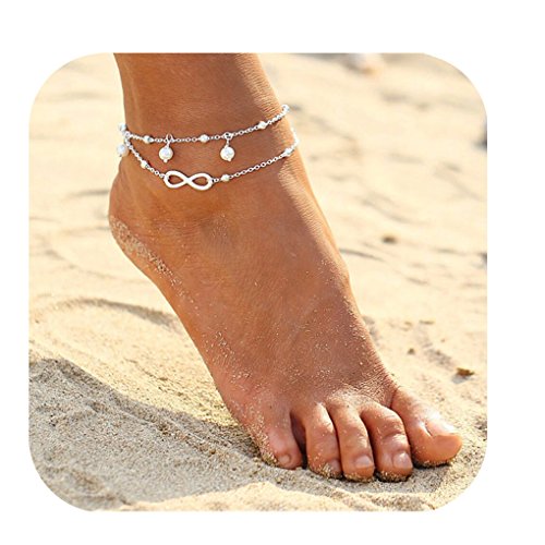 17mile Blue Starfish Turtle Anklet Multi-layer Charm Beads Sea Bench Handmade Boho Anklet Foot Jewelry Gifts for Women    Andyle Sexy Anklets For Women Crystal Rhinestone Stretch Tennis Ankle Elastic Bracelet    Simsly Anklets Bracelet Beach with Beads Ankle Foot Chain for Women and Girls JL-0154 (Silver)