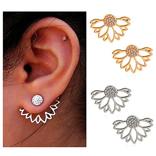 Suyi Fashion Hollow Lotus Flower Earrings Crystal Simple Chic Stud Earrings Set AGS    Unicra Fashion Multilayer Tassel Earrings Ear Clips with Leaf Shape for Women and Teen Girls    UHIBROS Womens Stainless Steel Stud Earrings Set Hypoallergenic Pierced Cubic Zirconia 6 Pairs 3-8mm