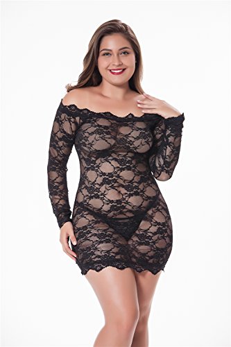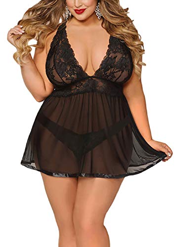 ohyeah Women Plus Size Lace Babydoll Lingerie Set Mesh Chemise Sleepwear Outfits    XAKALAKA Women's Plus Size Lingerie Babydoll Front Slit Lace Mesh Chemise Sleepwear Purple XXXL    Avidlove Women's Lace Kimono Robe Babydoll Lingerie Mesh Nightgown Black XL
