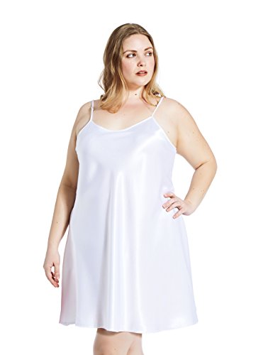 Jovannie Regular/Long Length Satin Chemise Plus Size Teddy Sleepwear Nightgown Nightie Full Slip Dress Babydoll Nightwear (3X Plus, White)    Vanity Fair Women's Rosette Lace Full Slip 10103, Damask Neutral, 36, 22 Inch    EaseWay Women's Basic Adjustable Spaghetti Strap Cami Under Mini Dress