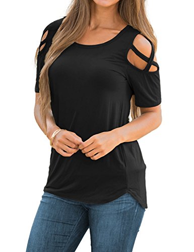 Lookbook Store Women's Black Casual Crisscross Cold Shoulder Short Sleeve Basic T-Shirt Blouse Tops Size X-Large (US 16-18)    Eanklosco Womens Summer Short Sleeve Cold Shoulder Tops V Neck Basic T Shirts (Black, L)    Sarin Mathews Womens Shirts Casual Tee Shirts V Neck Short Sleeve Botton up Tunic Tops Blouses Navy XL